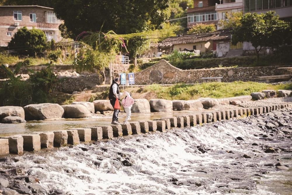 金谷溪岸文艺村山水灵动,沿着溪岸步道缓缓前行,脚下是平整的石板路,身旁是潺潺流淌的金谷溪。国际知名艺术家陈文令的“小红人”“诺亚方舟”等经典雕塑点缀在山水间,镶嵌于溪流两岸,构成了一道奇异的风景线。
